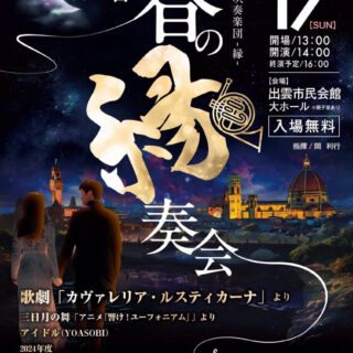 【期日】3月17日(日) 【会場】出雲市民会館 大ホール 【開場】13:30 【開演】14:00 【終演予定 】16:00 ※入場無料(整理券なし) 【曲目】 歌劇「カヴァレリア・ルスティカーナ」より 三日月の舞「アニメ『響けユーフォニアム...